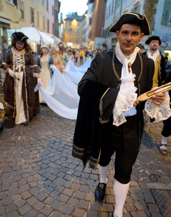 La sfilata dei figuranti in sfarzosi abiti realizzati in broccato e velluto ripercorre la storia del Trentino e delle sue Valli. Parte dal Castello del Buonconsiglio, sede per più di 500 anni del governo principesco, e raggiunge Piazza Duomo attraversando le principali vie del centro storico sotto gli occhi estasiati degli spettatori, che, per una serata, come in una macchina del tempo, vengono riportati indietro nei secoli. Dame e cavalieri, supportati da un popolo di cortigiani e contadini ci riportano nell’immaginario di un’epoca rinascimentale, testimonianza fedele di vita ai tempi del principe Bernardo Clesio.